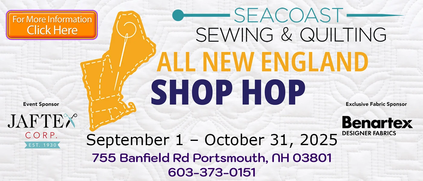 Seacoast Sewing And Quilting is your fabric and quilting and embroidery store located in the beautiful community of Portsmouth, NH. We sell Brother, Baby Lock, Handi Quilter and Juki machines. With everything from sewing & embroidery machines to fabric, and everything in between. We’re your one-stop sewing, quilting, and embroidery shop! We’re passionate about all forms of stitching and look forward to helping you succeed at sewing! Visit us today for your essential sewing needs!