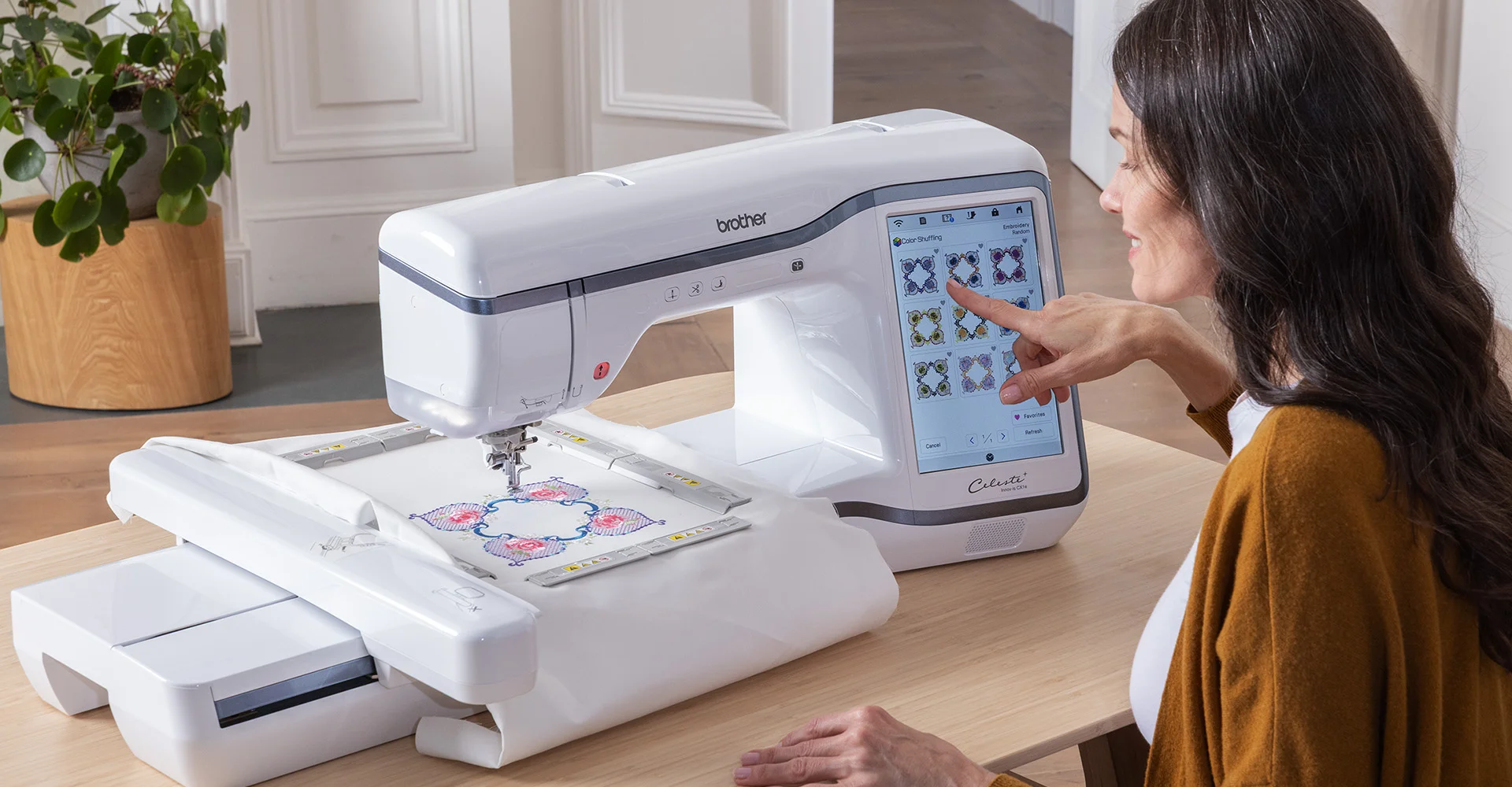 Time is money – so we made it easy to get right down to business with features like 10-needle speed, auto-threading, and color sorting. There’s no downtime with an important notification system, so you can be super productive. It’s portable, too, so you can take your business wherever opportunity leads you. Plus, there are optional accessories like a Flat Brim Cap Frame to expand your product line. Is business booming? With wireless LAN Connectivity and optional PE-DESIGN 11 software, you can connect up to 10 machines and grow your side hustle into a full-fledged business operation. It’s not all business, because let’s face it – this all started with your creative side. And this machine is made to create.